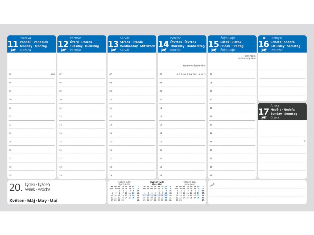 Kalendárium: české/slovenské týždenné stĺpcové + AJ + NJ