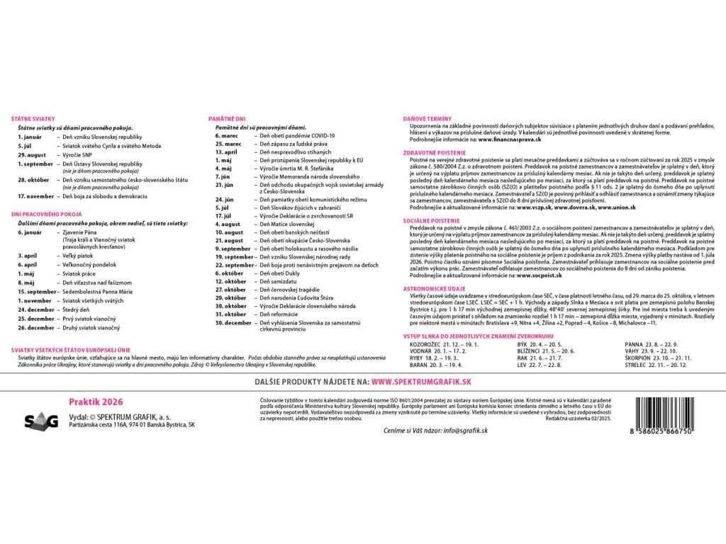 Stolový kalendár stĺpcový 32 x 15,5 cm - PRAKTIK 2026