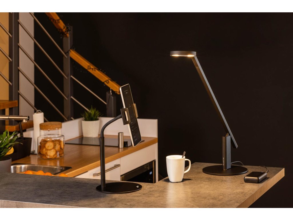 Stojan na stôl s držiakom na tablet a mobilný telefón, vybavený flexibilným ramenom a guľovým kĺbom