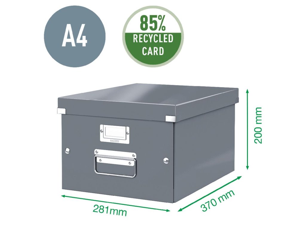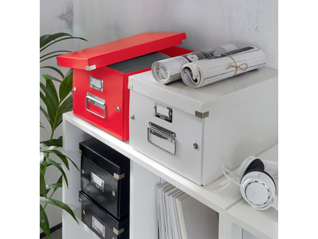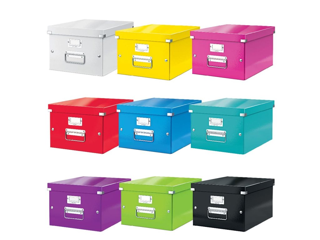 Archivačná krabica s vekom vo výrazných farbách WOW. Pevné a stabilné prevedenie. Materiál silný drevnatý kartón potiahnutý laminom. Rámik na štítok, vystužené rohy krabice a spojovacie cvoky vyrobené z kovu. Inteligentná skladacia konštrukcia - rýchle a jednoduché zloženie bez nutnosti použitia skrutiek a opätovné rozloženie, keď krabice práve nepoužívate. Dodávané rozložené. Väčšie balenie 6 ks. Univerzálna stredná archivačná krabica na uloženie dokumentov formátu A4, dosiek, obálok, katalógov a pod. Robustné kovové úchyty na jednoduchý prenos. Rozmery