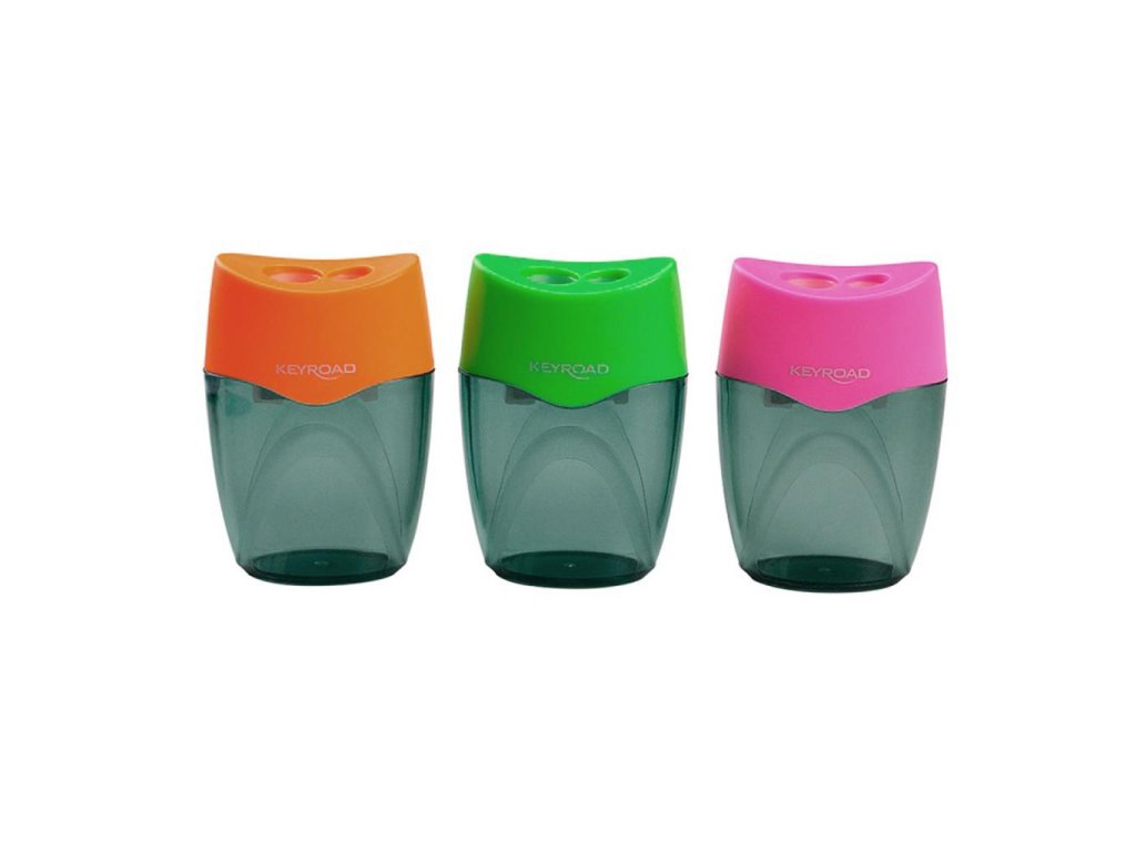 Plastové strúhadlo KEYROAD s nerozbitnou nádobou, dvojité. Balenie: blister. Farba: mix farieb.