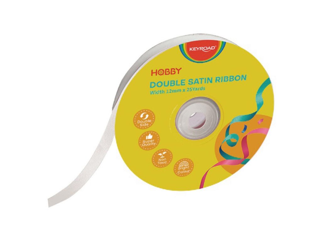 Stuha KEYROAD dvojitá saténová, 12 mm x 22,86 m, na cievke, biela