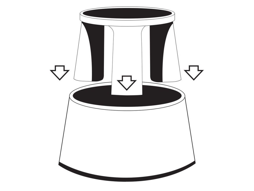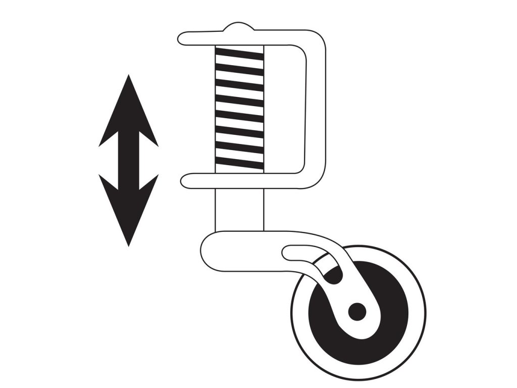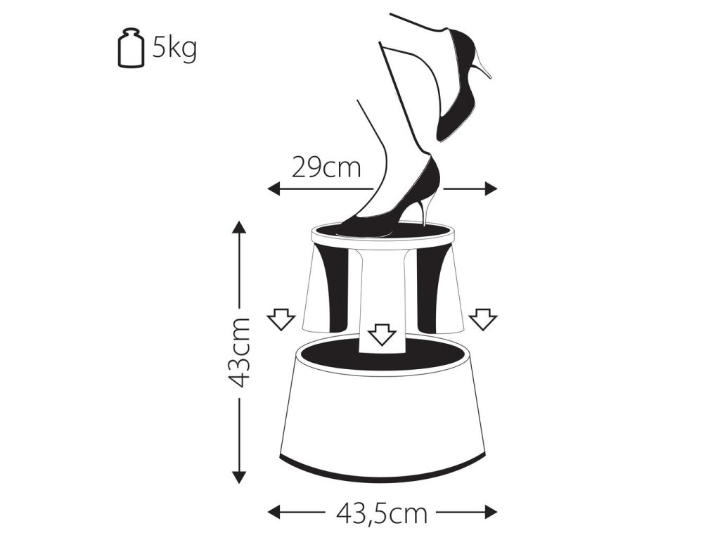 Bezpečný spôsob ako sa dostať na nedostupné miesta. Stupienok vyrobený z kovu, resp. plastu, miesta na stúpanie potiahnuté protišmykovou gumou. Tri vsadené kolieska umožňujú úplnú pojazdnosť. Pri používaní sa kolieska z dôvodu bezpečnosti zatiahnu. Výška 43 cm, vrchný priemer 41,5 cm, spodný priemer 44,5 cm. Nosnosť 150 kg. Farba čierna.