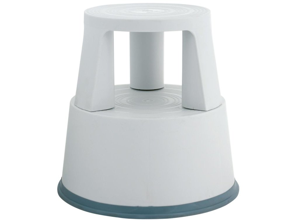 Bezpečný spôsob ako sa dostať na nedostupné miesta. Stupienok vyrobený z kovu, resp. plastu, miesta na stúpanie potiahnuté protišmykovou gumou. Tri vsadené kolieska umožňujú úplnú pojazdnosť. Pri používaní sa kolieska z dôvodu bezpečnosti zatiahnu. Výška 43 cm, vrchný priemer 41,5 cm, spodný priemer 44,5 cm. Nosnosť 150 kg. Farba sivá.