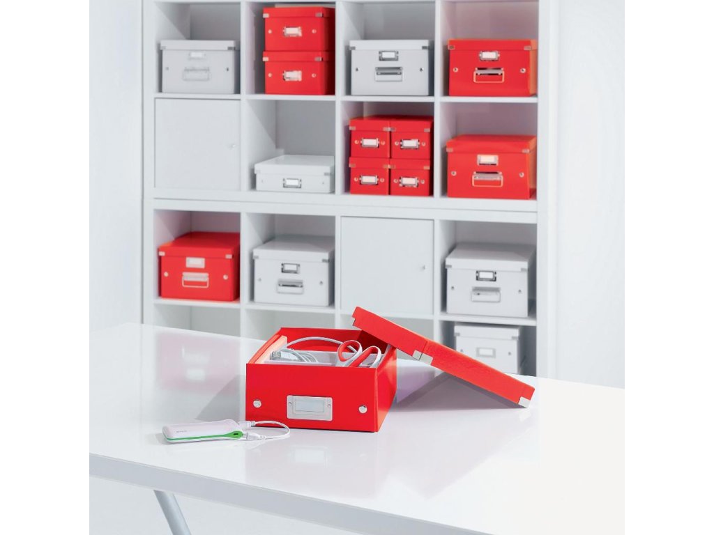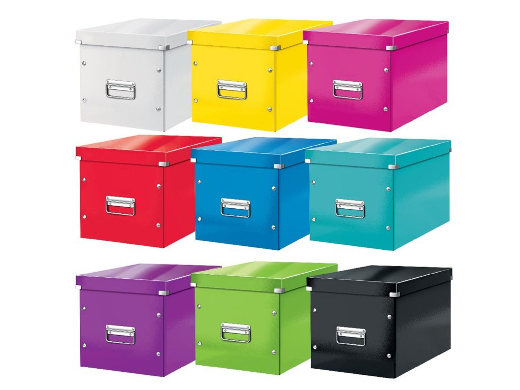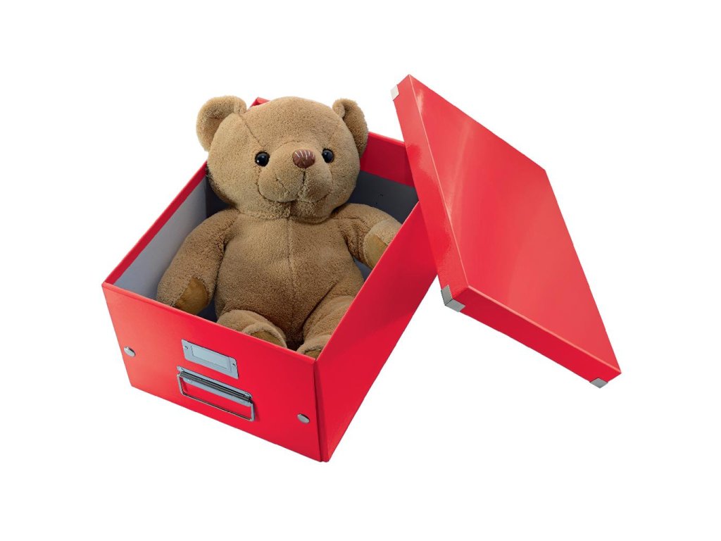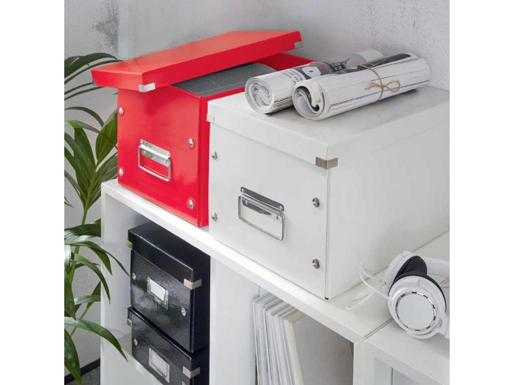 Atraktívna a štýlová krabica na ukladanie vysokých predmetov alebo vecí s oblým tvarom. Rýchle a jednoduché poskladanie vďaka gombíkovému mechanizmu a možnosti zloženia (ak nie je krabica potrebná, je možné ju rozložiť a zaberie menej miesta). Moderný dizajn a farby osviežia vašu kanceláriu aj domov. Lesklý laminovaný povrch vytvára prvotriedny vzhľad, zvyšuje odolnosť a ľahko sa čistí. Odolné kovové príchytky na pohodlnú manipuláciu. Patentovaná konštrukcia zaručuje vyššiu ochranu proti náhodnému otvoreniu krabice pri prenášaní ťažkých vecí. Materiál pevný kartón s polypropylénovou lamináciou. Rozmery 320 x 310 x 360 mm. Farba červená.