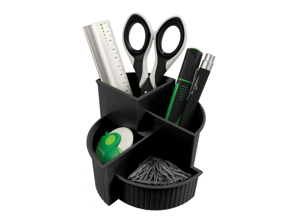 Stojan so 4 sekciami na písacie potreby a ďalšie drobnosti v dizajne rady Linear. Priemer 14 cm, výška 10 cm.