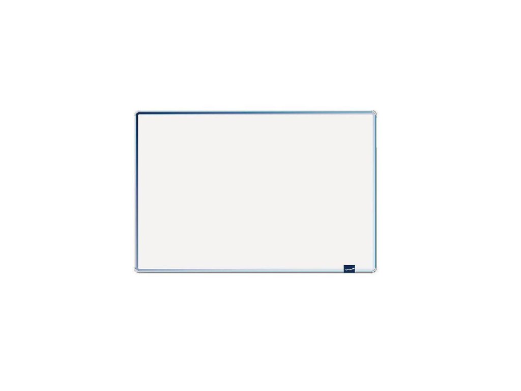 Biela magnetická tabuľa s lakovanou úpravou povrchu. Magnetický povrch vhodný na popisovanie za sucha stierateľnými popisovačmi. Rám s modrým okrajom a plastovými rohovými spojkami, odľahčená hmotnosť. Dodávaná s montážnou sadou, 18 cm hliníkovou odkladacou lištou a popisovačom.