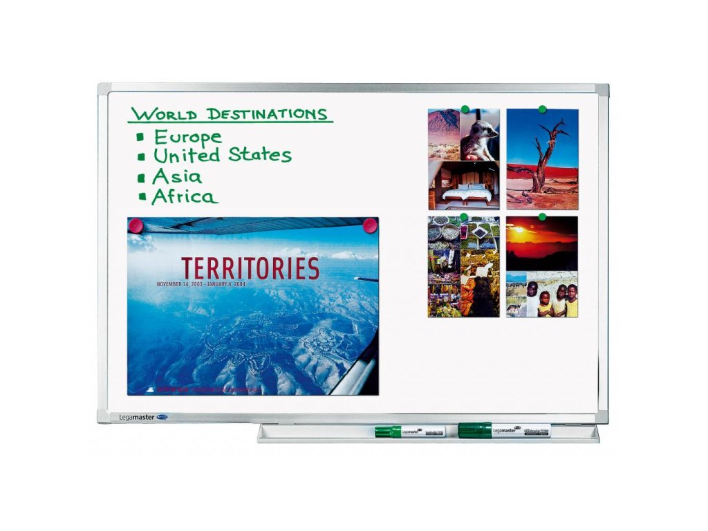 Biela tabuľa s keramickou úpravou povrchu. Odľahčená, ale veľmi pevná a hrubá vnútorná výstuž. Odolný magnetický povrch, vhodný na popisovanie za sucha stierateľnými popisovačmi. Veľmi jednoduché stieranie atramentu aj po dlhšom čase. Kvalitný povrch umožňuje odstrániť atrament aj z nesprávne použitého popisovača (napr. permanentného) bez poškodenia povrchu. Zvlášť vhodná na frekventované a dlhodobé používanie (seminárne miestnosti, učebne a pod.). Hliníkový rám so svetlosivými rohovými spojkami z plastu. Montáž na výšku alebo šírku. Dodávaná s montážnou sadou, odkladacou lištou a popisovačom.