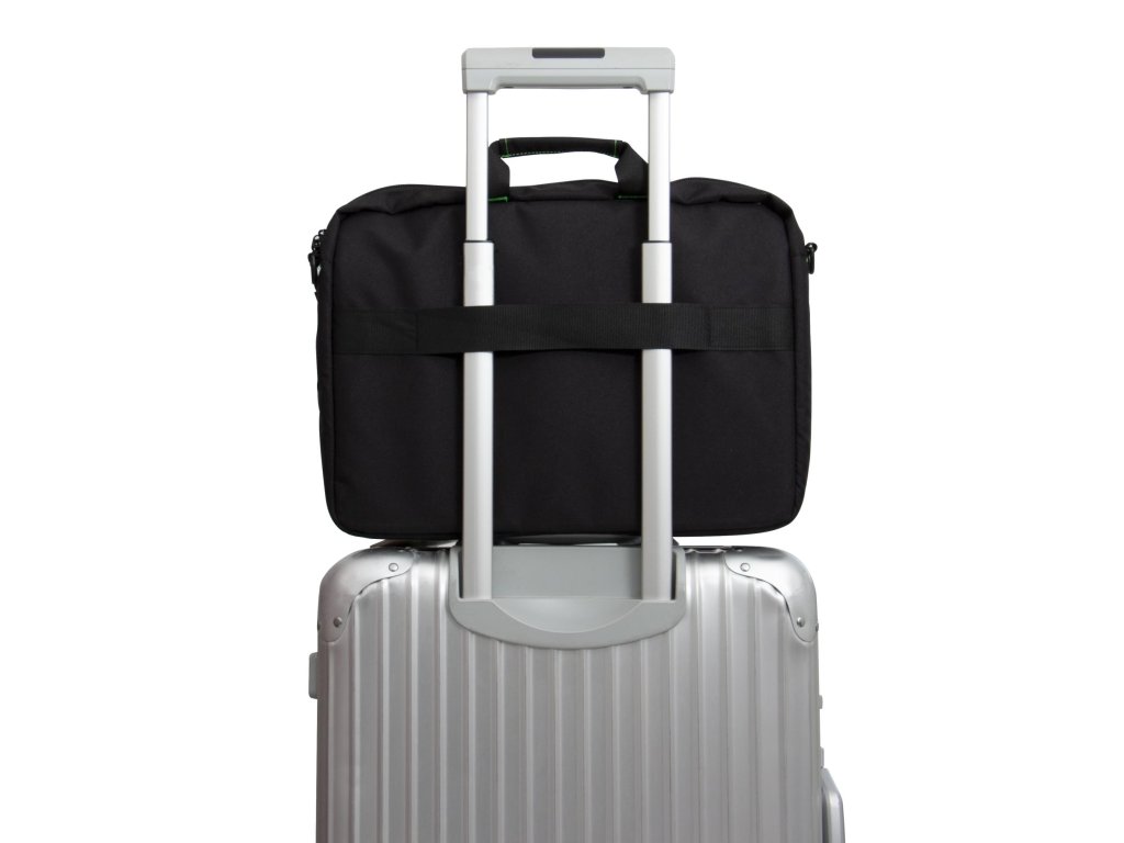 Taška na 15,6´´ notebooky je vyrobená z recyklovateľných plastových fliaš, má vnútorné polstrované vrecko na notebook, vonkajšie polstrované vrecko na nabíjačku, smartfón a príslušenstvo, hlavnú priehradku na zips, pohodlné držadlá, nastaviteľný ramenný popruh a zadný popruh na pripevnenie kufra na vozík pri cestovaní.
