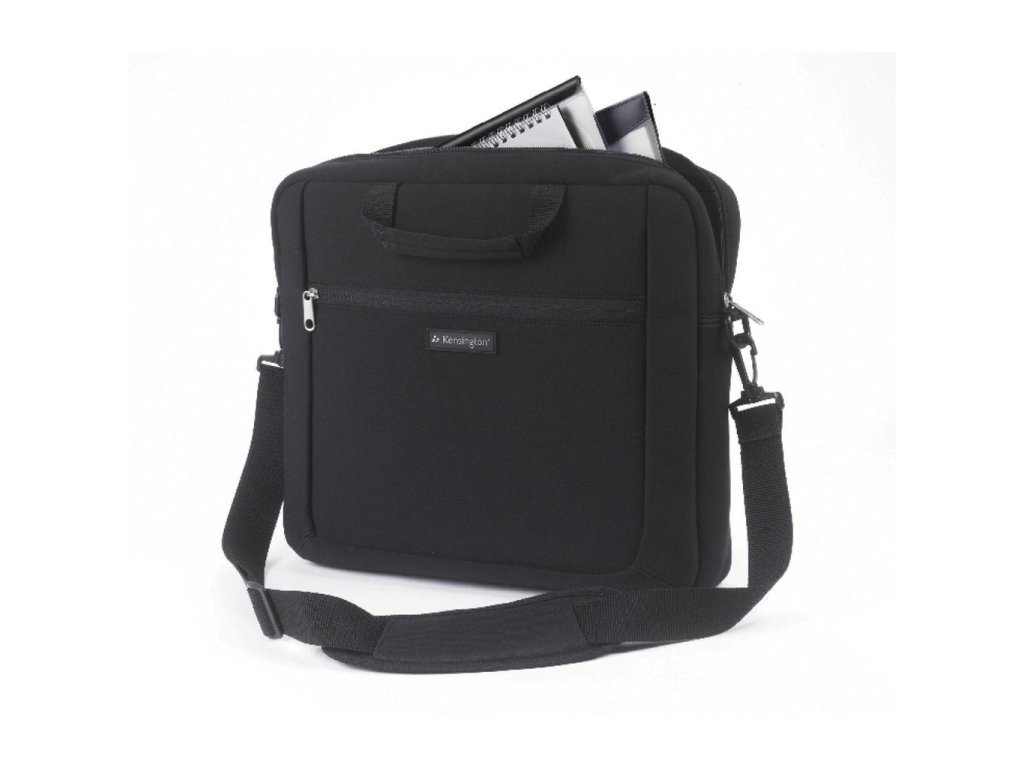 Taška Kensington SP15 má neoprénový vonkajší povrch, ktorý chráni notebook, a mäkké pohodlné uchá, predné a vnútorné