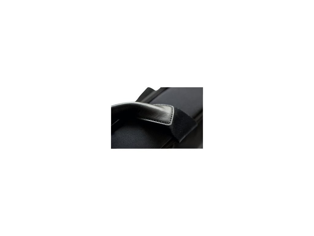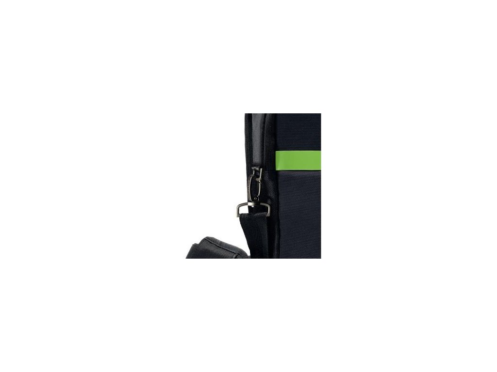 Kvalitná, ľahká a kompaktná taška s dvoma hlavnými a jednou menšou prednou kapsou. Výrazný a elegantný dizajn dopĺňajú kvalitné zipsy a štýlové matne kovové pracky. Čierny povrch s kontrastným zeleným vnútrajškom, aby sa predmety ľahšie hľadali. Taška ponúka miesto na všetky vaše mobilné zariadenia, 13,3` notebook a dokumenty do formátu A4. Je možné pohodlne nosiť vďaka vystlaným rukovätiam z pravej kože alebo nastaviteľnému ramennému popruhu, prípadne upevniť na držadlo pojazdného kufra. Farba čierna/zelená.
