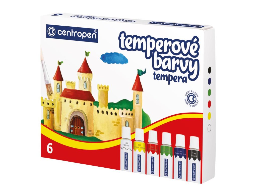 Temperové farby, 6 farieb - biela, žltá, zelená, modrá, ružová, čierna. Balenie v krabičke. Objem 1 kus/25 ml.