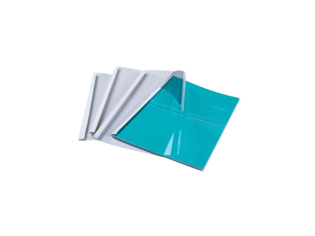 Obálka k zariadeniam na tepelnú väzbu s prednou stranou z priehľadnej polyesterovej fólie a zadnou stranou z bieleho kartónu hrúbky 200 g v saténovej úprave. Kapacita listov 101-120. Balenie 100 kusov.
