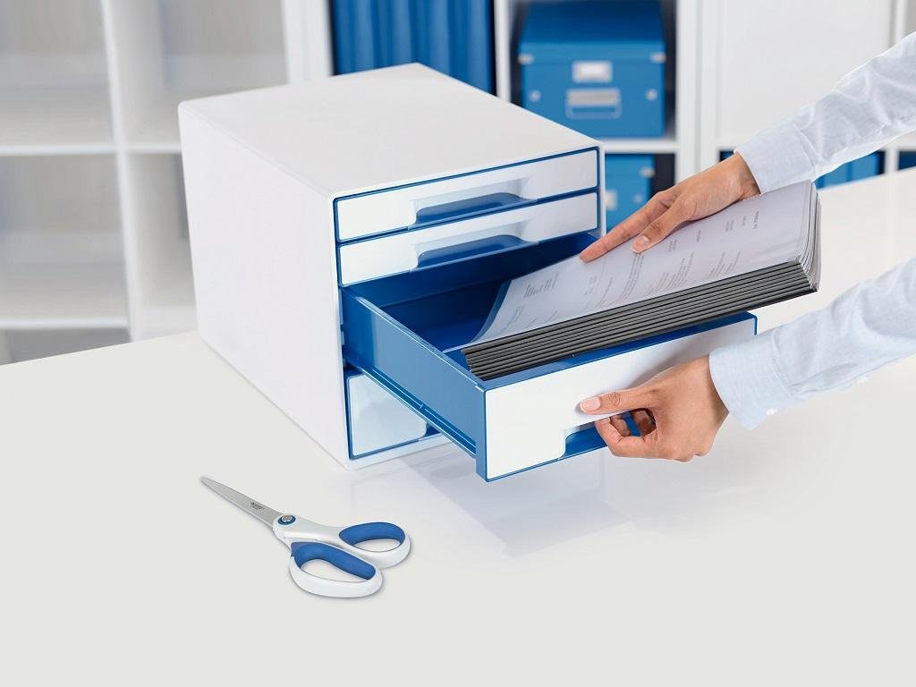 Titánové kancelárske nožnice Leitz WOW 205mm modré