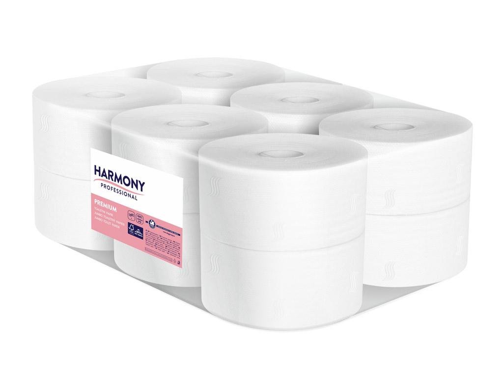 Toaletný papier HARMONY Professional Mini Jumbo Roll celulóza 100% celulóza, 80% belosť, návin 117,5 m. Väčšie balenie 12 ks.