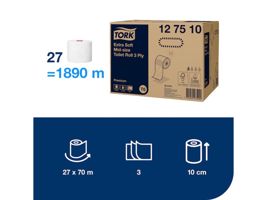 Toaletný papier 3-vrstvový TORK Premium Extra Soft, 70 m, biely T6, 27 ks