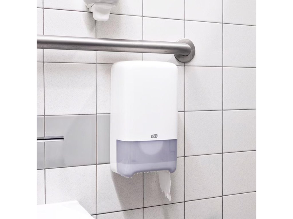 Dvojitý zásobník Tork na toaletný papier strednej veľkosti na kotúči je moderný a efektívny systém vhodný pre nízko až stredne frekventované toalety a umyvárne s vysokým dôrazom na spokojnosť zákazníkov. Zabezpečuje sa tak vysoká účinnosť a to, že toaletný papier je pre hostí vždy k dispozícii. Tork kotúč extra jemného toaletného papiera strednej veľkosti ponúka vynikajúci vzhľad so správnymi vlastnosťami.