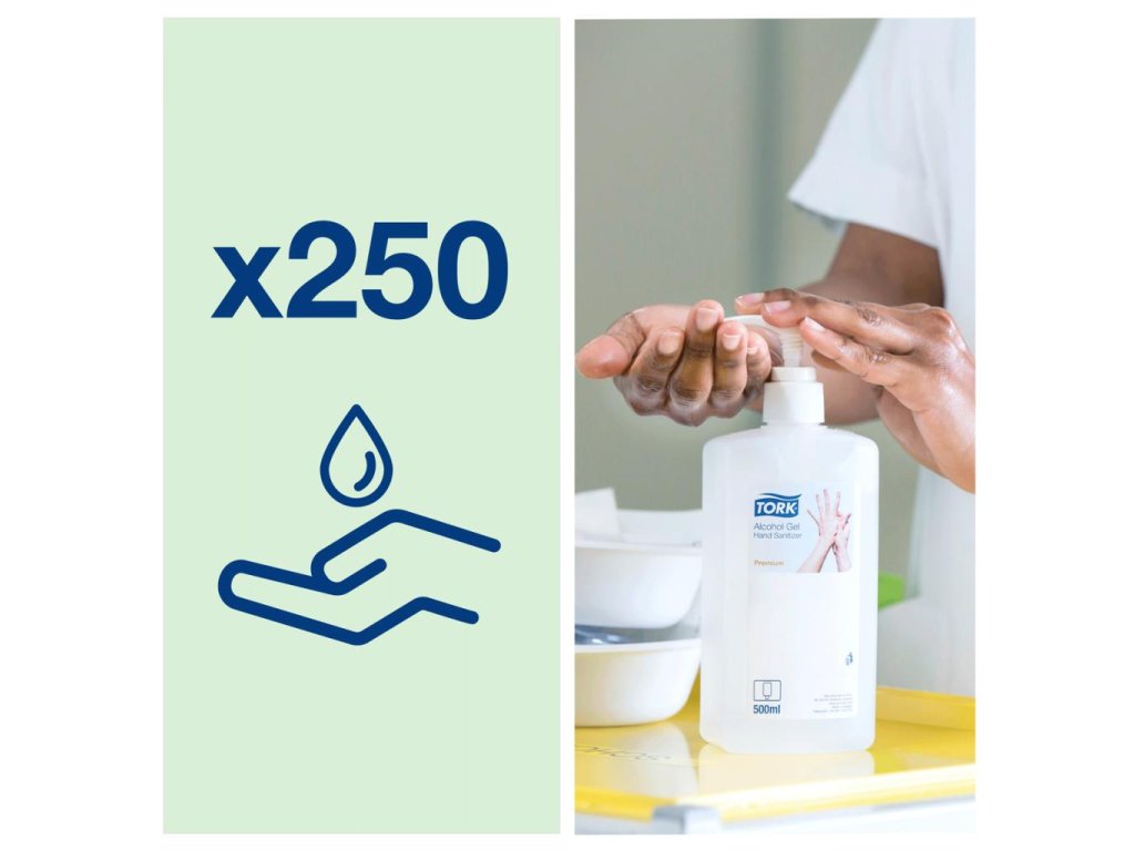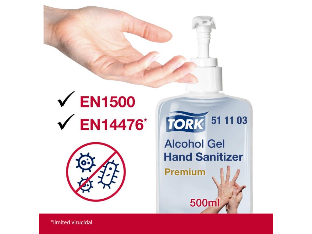 Tork Alcohol gélový dezinfekčný prostriedok s 80 % obsahom denaturovaného liehu efektívne ničí mikroorganizmy a pomáha tak predísť šíreniu infekcií. Efektívny voči rôznym organizmom vrátane obalených vírusov, norovírusov a rotavírusov. Ideálny na každodennú hygienu rúk aj v zdravotníctve. Vhodné pre všetky Tork zásobníky na mydlá a dezinfekčné prostriedky (S4). Účinné voči rôznym problémovým organizmom - spĺňa normy EN1500, EN 12791 a EN14476 (všetky obalené vírusy, ako sú HIV, SARS, korona, HBV, HCV, chrípka H1N1, H5N1 atď. a aj rotavírus a norovírus). Dermatologicky testované zloženie bez lepkavých zvyškov.
