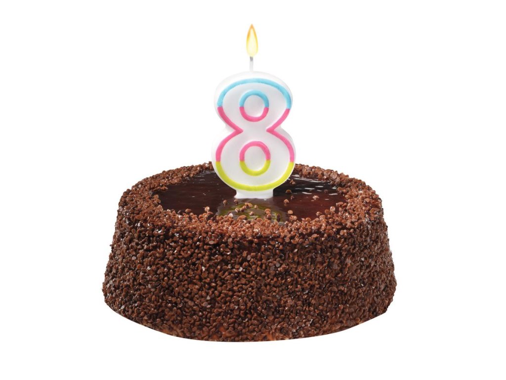 Sviečka `8` - výška: 9 cm, balenie na blistri.