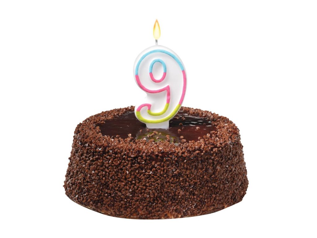 Sviečka `9` - výška: 9 cm, balenie na blistri.
