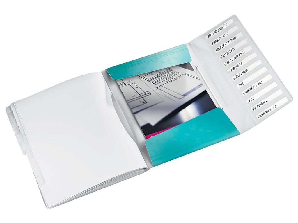 Nepriehľadné triediace knihy z polypropylénu s gumičkou na organizáciu a triedenie dokumentov formátu A4. Trojchlopňové obaly na zadnej strane na uloženie voľných listov, obal na register v zadnej chlopni. V dizajne rady WOW v žiarivých farbách. Kapacita 200 listov. Prevedenie 12 oddielov. Väčšie balenie 4 ks.