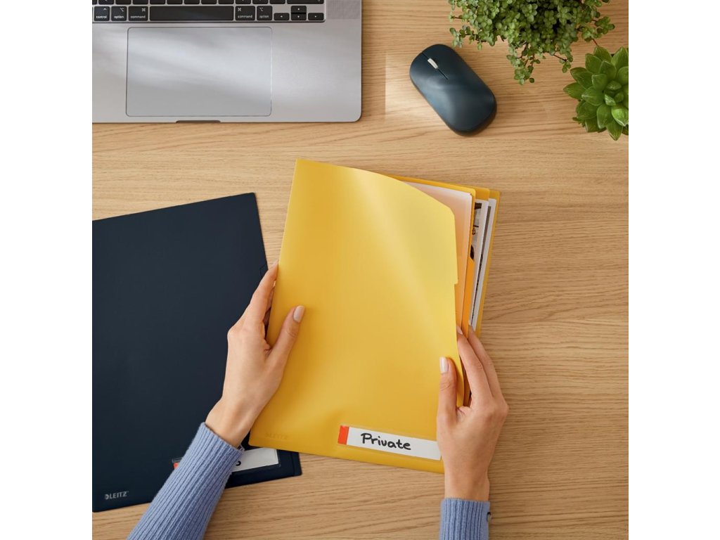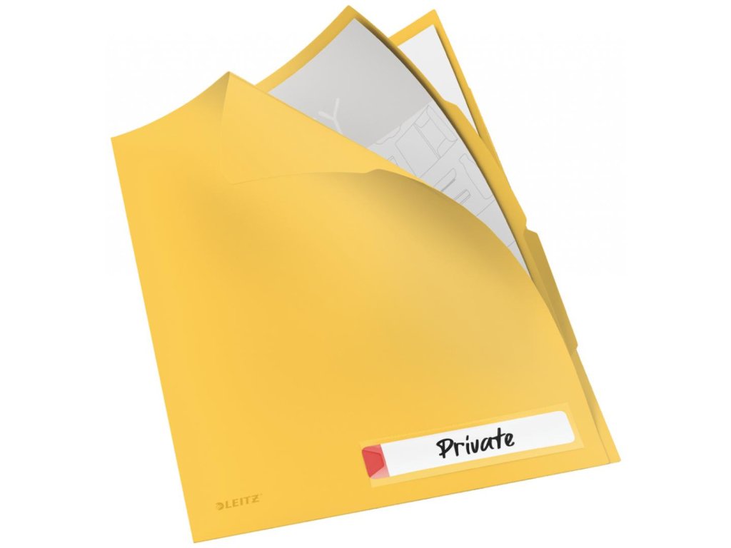 Triediace dosky Leitz Cosy na prenos a organizáciu citlivých osobných a obchodných dokumentov chránia obsah pred cudzími očami. Tieto prémiové dosky sú perfektným doplnkom či už domov alebo do kancelárie, pomôžu vám pracovať efektívne a organizovane. Ideálne na ukladanie a prenos citlivých dokumentov až do formátu A4Kapacita až 40 hárkov papiera (80 g/m2). 3 priehradky na organizovanie rôznych projektov. Vyrobené z recyklovateľného 0,20 mm hrubého PP pre vysokú pevnosť a odolnosť. Farba žltá.