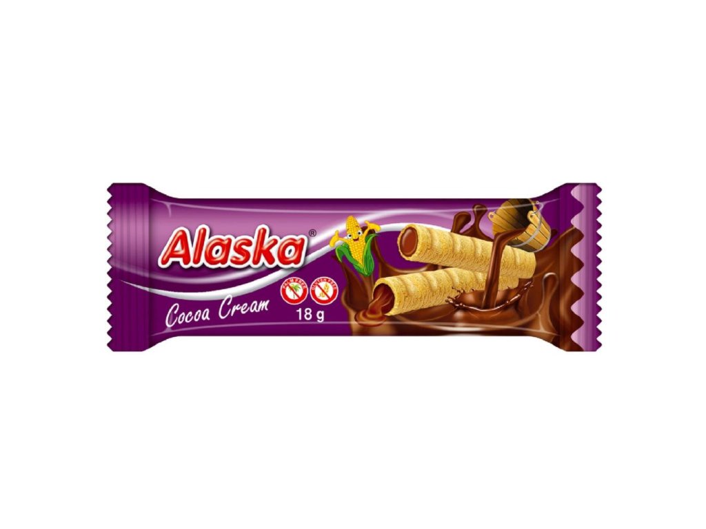 Dve jemné kukuričné trubičky Alaska plnené orieškovým krémom (83%). Obľúbená pochúťka na desiatu a olovrant. Vyrobené na Slovensku.