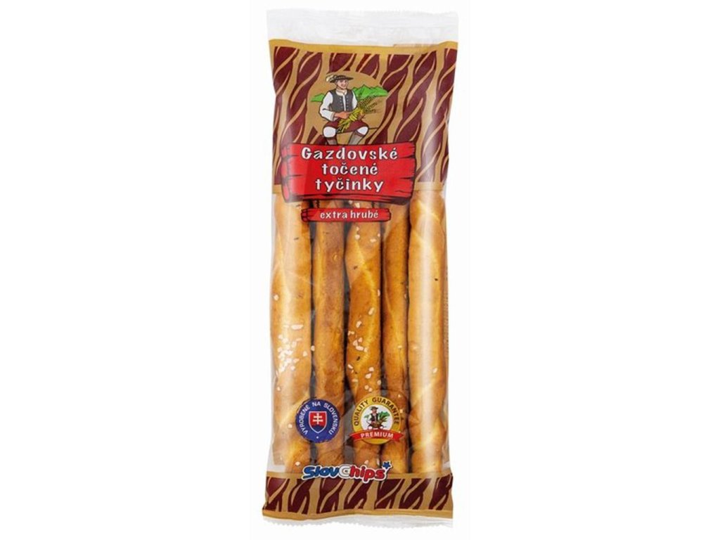 Gazdovské točené tyčinky s pšeničnej múky sypané soľou.