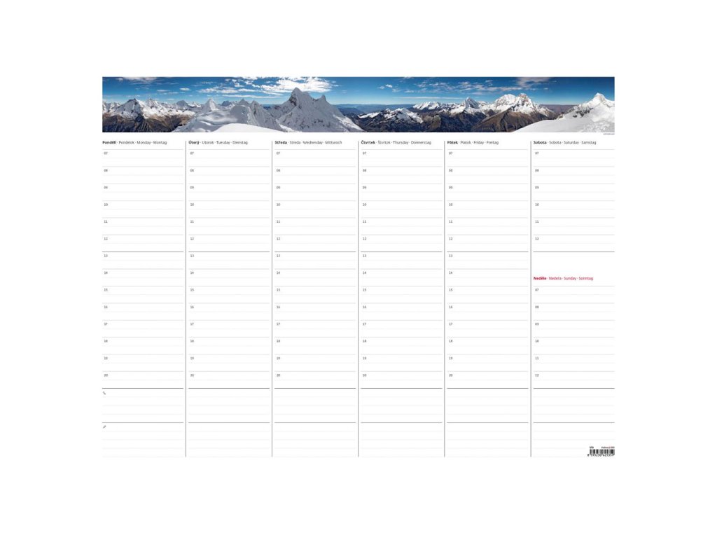 Týždenná plánovacia mapa A2 63 x 48 cm s fotografiou bez spodnej lišty