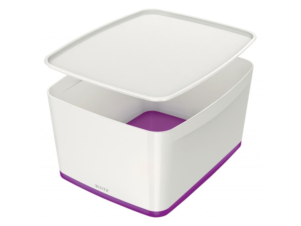 Úložný box s vekom Leitz MyBox, veľkosť L biela/purpurová