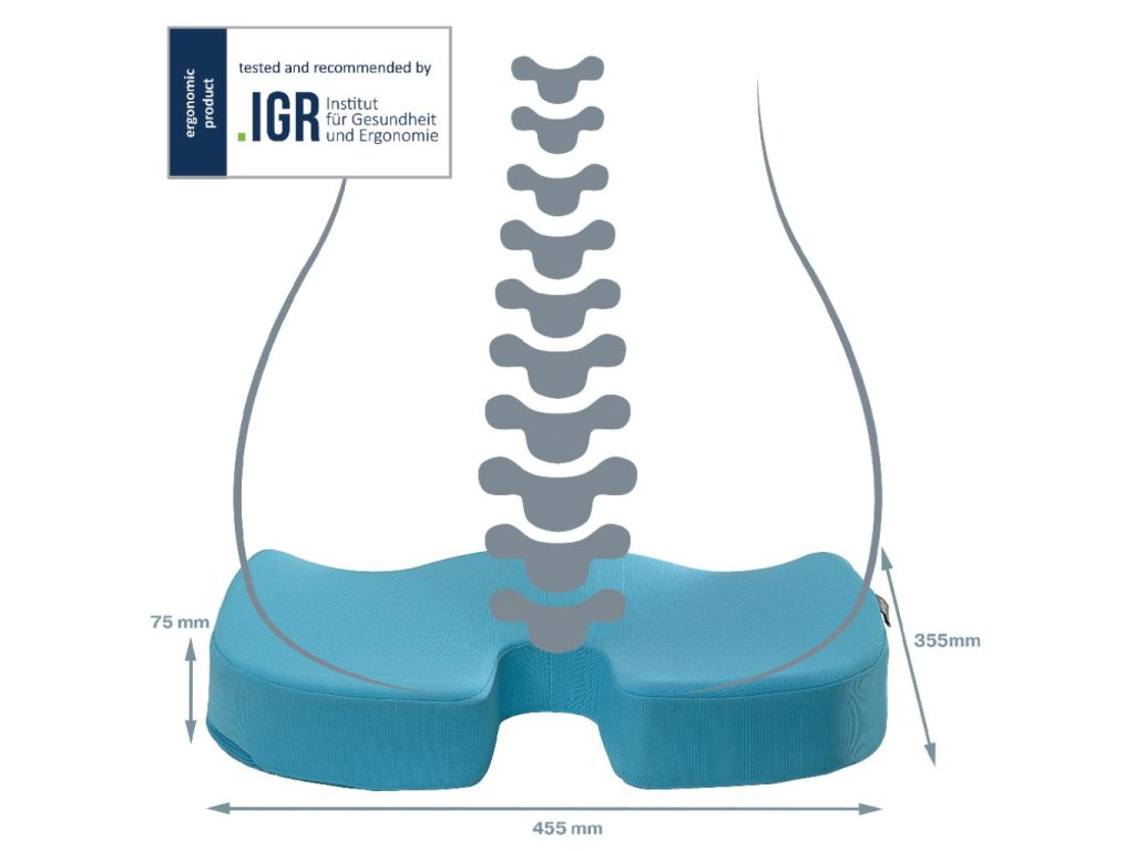 Vankúš je nvrhnutý tak, aby podporoval zdravé držanie tela, zlepšoval krvný obeh a zmierňoval tlak na chrbticu, čím pomáha výrazne znížiť nepohodlie, únavu a stuhnutosť. Tento štýlový ortopedický vankúš na sedenie s minimalistickým dizajnom a matnými farbami zlepší zdravie a pohodu tým, že bez námahy vytvorí dokonalé aktívne (pracovné) prostredie pre každého. Ručne prateľný látkový poťah. Farba modrá.