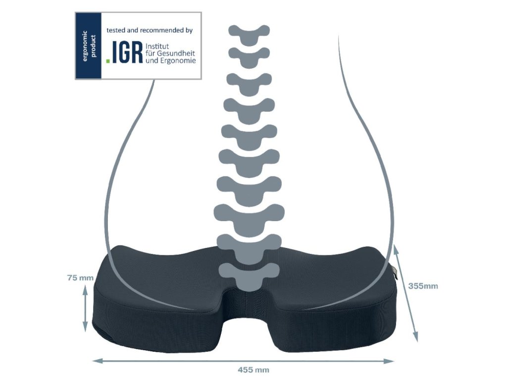 Vankúš je nvrhnutý tak, aby podporoval zdravé držanie tela, zlepšoval krvný obeh a zmierňoval tlak na chrbticu, čím pomáha výrazne znížiť nepohodlie, únavu a stuhnutosť. Tento štýlový ortopedický vankúš na sedenie s minimalistickým dizajnom a matnými farbami zlepší zdravie a pohodu tým, že bez námahy vytvorí dokonalé aktívne (pracovné) prostredie pre každého. Ručne prateľný látkový poťah. Farba sivá.