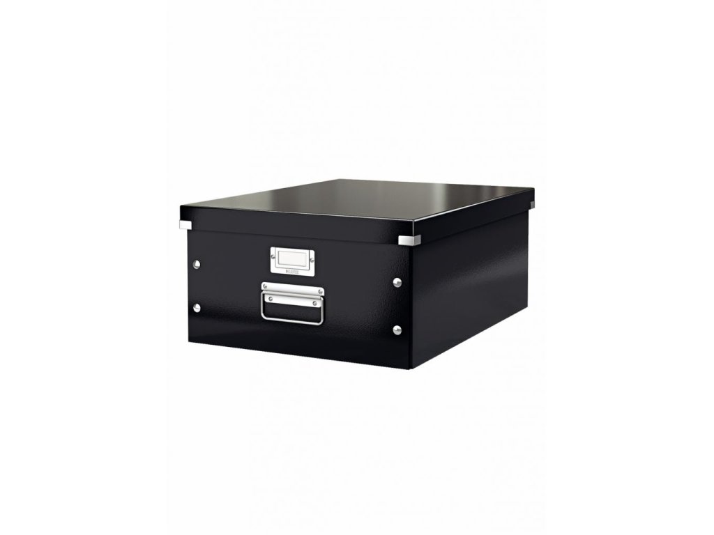 Skladacia archivačná krabica vhodná na ukladanie dokumentov formátu A3, fólií, obalov, obálok, zakladačov, katalógov a pod. Rámik na popisovací štítok, laminovaný povrch pre lepšiu a trvalejšiu ochranu, kovové rohy a robustné kovové úchyty pre ľahký prenos. Moderný design, ktorý vyzerá skvelo doma i v kancelárii. Jednoduché zloženie a vysoká stabilita vďaka pevnej konštrukcii. Rozmery (š × v × h) 369 × 200 × 482 mm. Farba čierna.