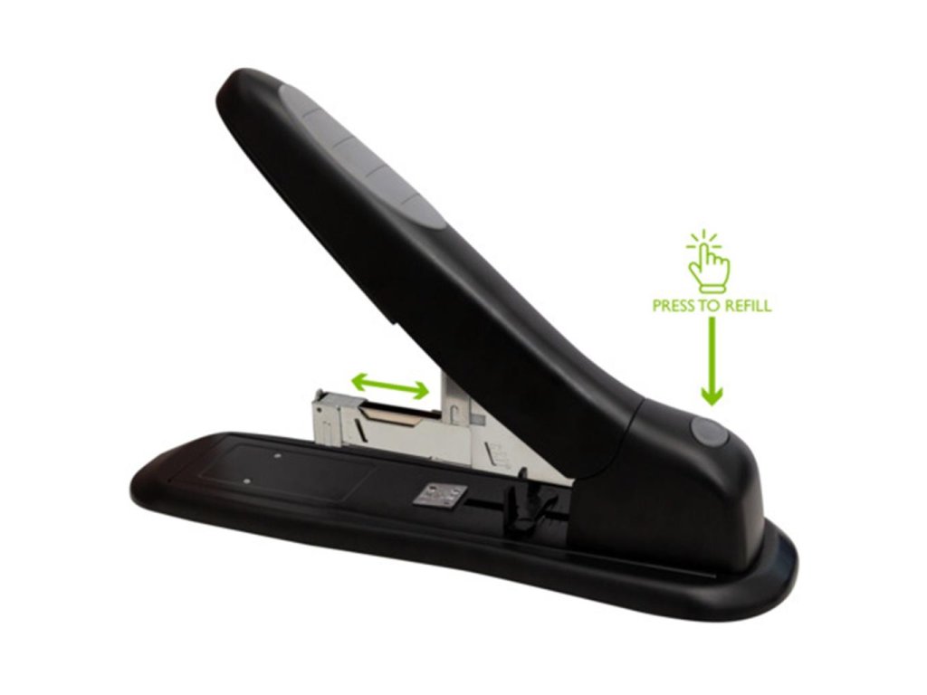Veľmi výkonná bloková zošívačka s kapacitou zošitia do 200 listov. Celokovový nástroj s nastaviteľnou nákovkou pre pevné a odnímateľné zošívanie, gumená základňa pre optimálne uchopenie. Hĺbka zošívania 6 cm. Spinky 23/8, 23/10, 23/13, 23/15, 23/17, 23/19, 23/21, 23/23.