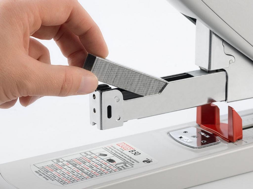 Cenovo výhodná kovová zošívačka s rýchlym odstraňovaním zaseknutých spiniek a zásobníkom s dvojitým vedením spiniek. Kapacita náplne 100 spiniek 23/ 6 - 17 SUPER. Hĺbka zošívania 7,5 cm. Hmotnosť cca 1 460 g. Záruka 25 rokov. Farba sivá. Kapacita 140 listov.