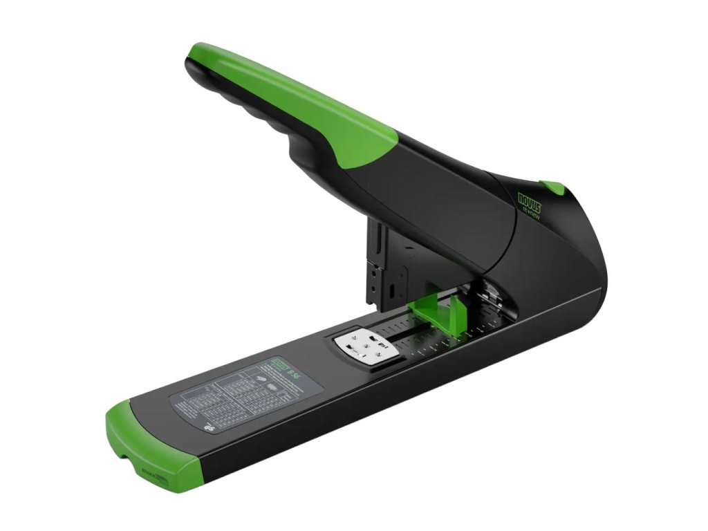 Veľkokapacitná zošívačka pre profesionálne použitie z kolekcie šetrnej k životnému prostrediu re+new. Kapacita súčasne zošitých listov až do 200 listov. Celokovová s plastovým krytom vyrobeným z udržateľného recyklátu. Systém ABS pre bezproblémové zošívanie bez zaseknutia spiniek. Kapacita náplne 100 spiniek 23/8 až 23/24 Super. Hĺbka zošívania 7,5 cm. Hmotnosť 1670 g. Záruka 25 rokov. Farba čierna.