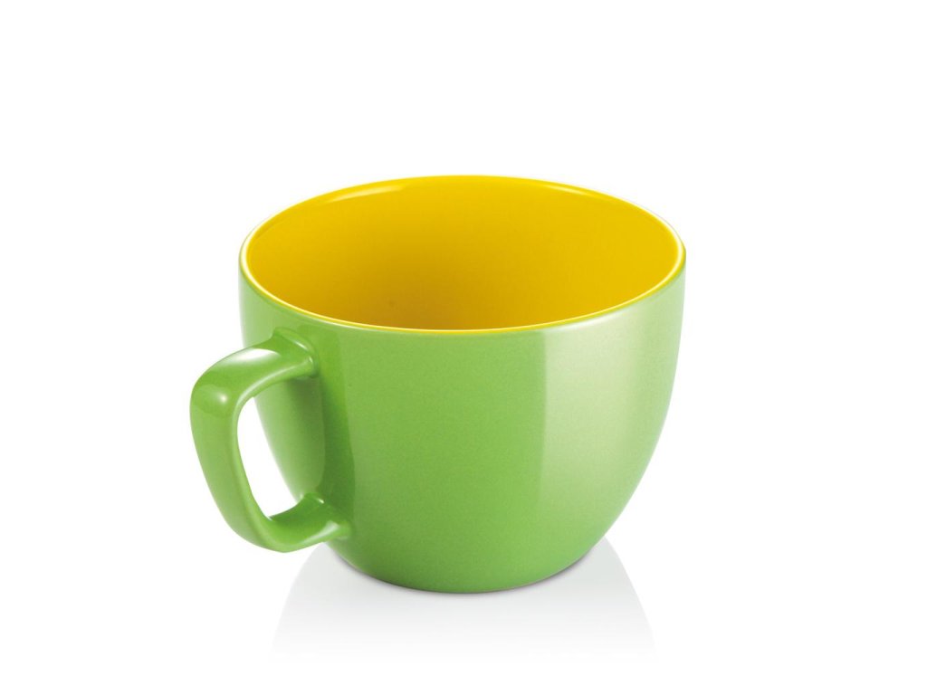 Hrnček vyrobený z prvotriednej keramiky s dvojfarebnou lesklou glazúrou. Vhodný do mikrovlnnej rúry, chladničky a umývačky. 3 roky záruka. Objem 590 ml. Farba zelená.