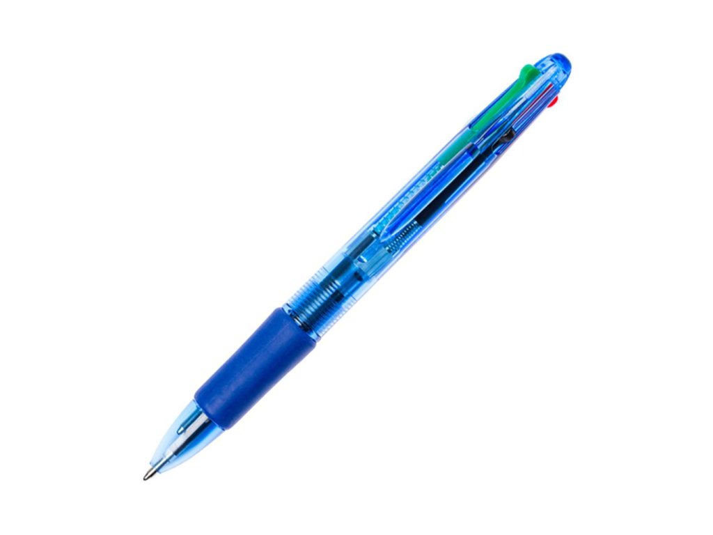 Jednorazové 4‑farebné pero so stláčacím mechanizmom a klipom s gumenou úchytovou zónou.
