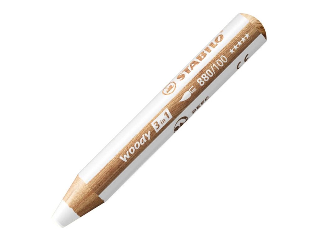 STABILO Woody 3 v 1 je multifunkčná farbička, vodovka a voskovka v jednom, ktorá vie kresliť na papier, na tmavý podklad, kartón, sklo, kov, drevo alebo trebárs aj na gumáky. Ozdobiť si drevený rámik, okno, chlebník alebo plechovku na ceruzky je hračka. Deti ju milujú a rodičia môžu zostať v pokoji, pretože farbu možno z ručičiek aj z hladkého povrchu dobre zmyť vodou s mydlom alebo saponátom. Tuha obsahuje osemkrát viac farby než bežná farbička, nemožno ju zlomiť a hodí sa na extra dllllllllhé kreslenie a na veľké umelecké diela: vďaka hrubej tuhe je možné všetko rýchlo vyfarbiť. Vďaka svojmu tvaru padne woody výborne do detskej ručičky. K dostaniu je 18 atraktívnych farieb, vrátane zlatej a striebornej. Zakúpiť sa dá v baleniach alebo jednotlivo. XXL tuha je uložená v tele, ktoré je vyrobené z dreva certifikovaného PEFC® (PEFC/04-31-1728) a je teda šetrná k životnému prostrediu.