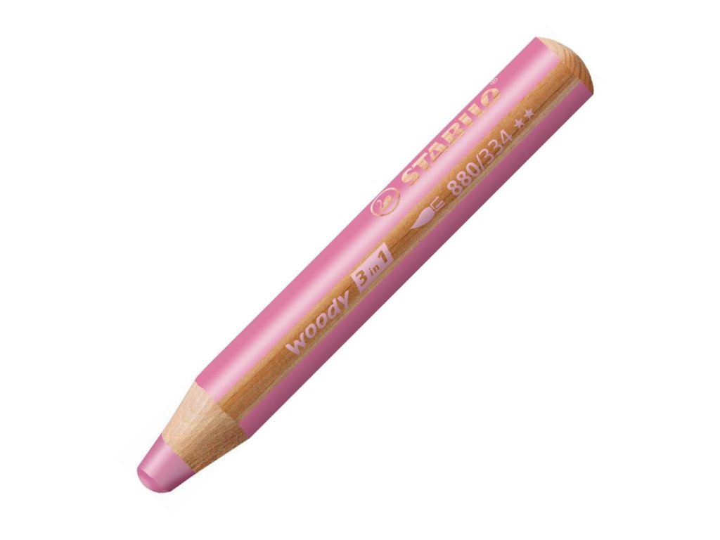 STABILO Woody 3 v 1 je multifunčkná farbička, vodovka a voskovka v jednom, ktorá vie kresliť na papier, na tmavý podklad, kartón, sklo, kov, drevo alebo trebárs aj na gumáky. Ozdobiť si drevený rámik, okno, chlebník alebo plechovku na ceruzky je hračka. Deti ju milujú a rodičia môžu zostať v pokoji, pretože farbu možno z ručičiek aj z hladkého povrchu dobre zmyť vodou s mydlom alebo saponátom. Tuha obsahuje osemkrát viac farby než bežná farbička, nemožno ju zlomiť a hodí sa na extra dllllllllhé kreslenie a na veľké umelecké diela: vďaka hrubej tuhe je možné všetko rýchlo vyfarbiť. Vďaka svojmu tvaru padne woody výborne do detskej ručičky. K dostaniu je 18 atraktívnych farieb, vrátane zlatej a striebornej. Zakúpiť sa dá v baleniach alebo jednotlivo. XXL tuha je uložená v tele, ktoré je vyrobené z dreva certifikovaného PEFC® (PEFC/04-31-1728) a je teda šetrná k životnému prostrediu.