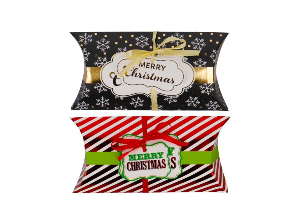 Vianočná papierová darčeková krabička pukačka 220x100mm 2 ks mix farebných motívov