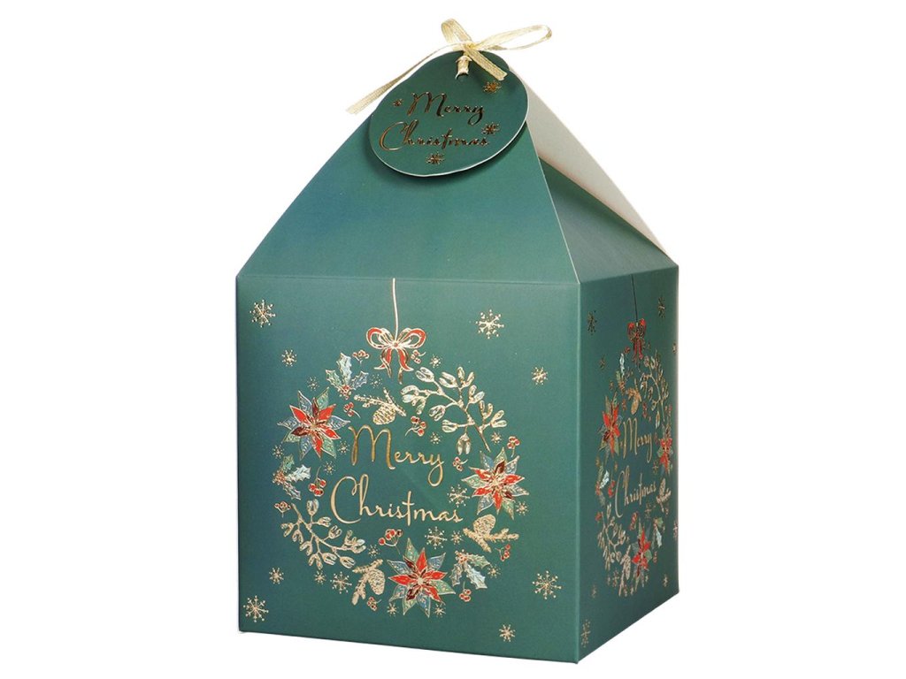 Vianočná papierová darčeková krabička so štítkom 220x104mm zelená 4 ks