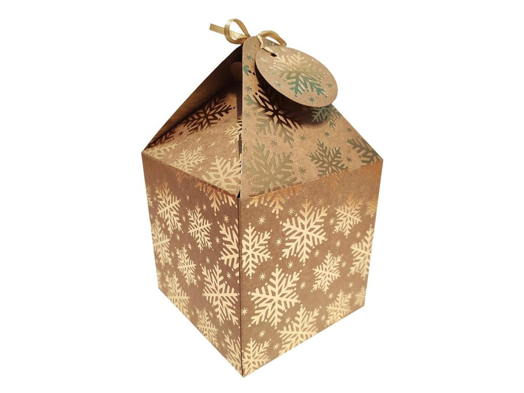 Vianočná papierová darčeková krabička so štítkom 220x104mm zlatá 4 ks