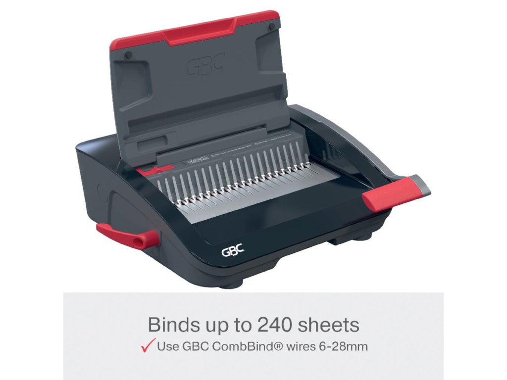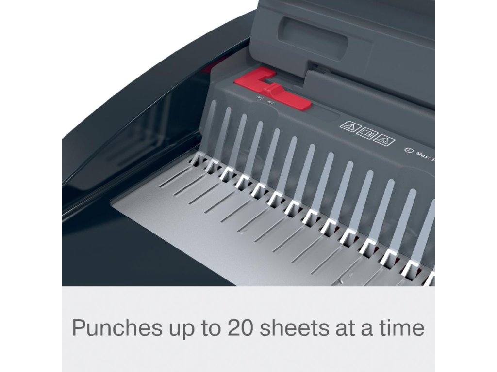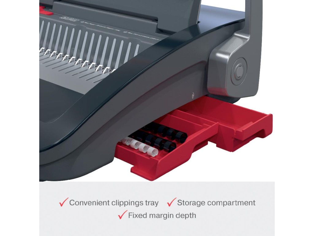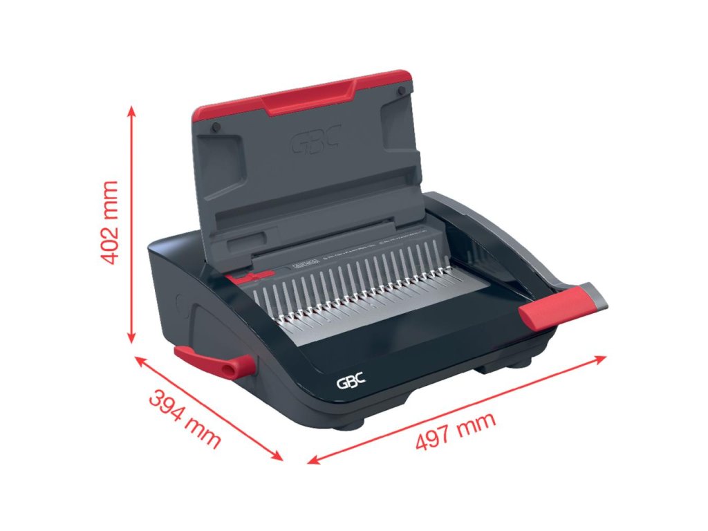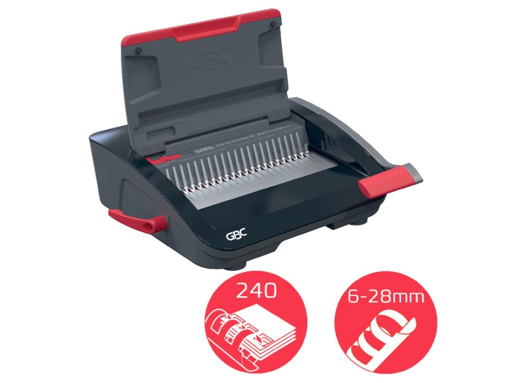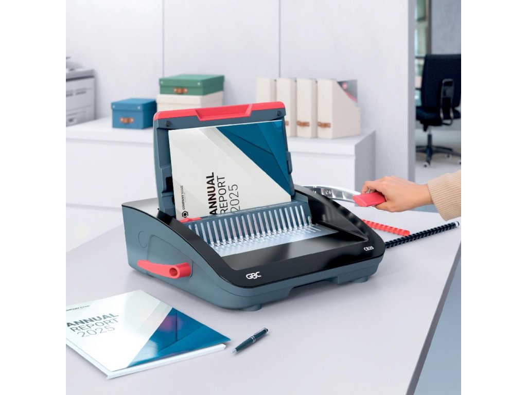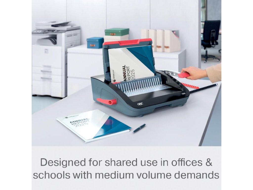 • spoľahlivý a kompaktný ručný viazač s plastovými chrbtami, navrhnutý na zdieľané použitie v kancelárskom a školskom prostredí s bežnými nárokmi na objem väzby