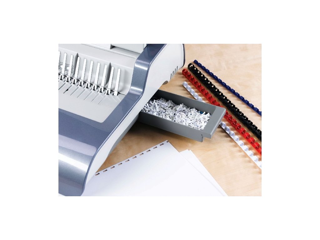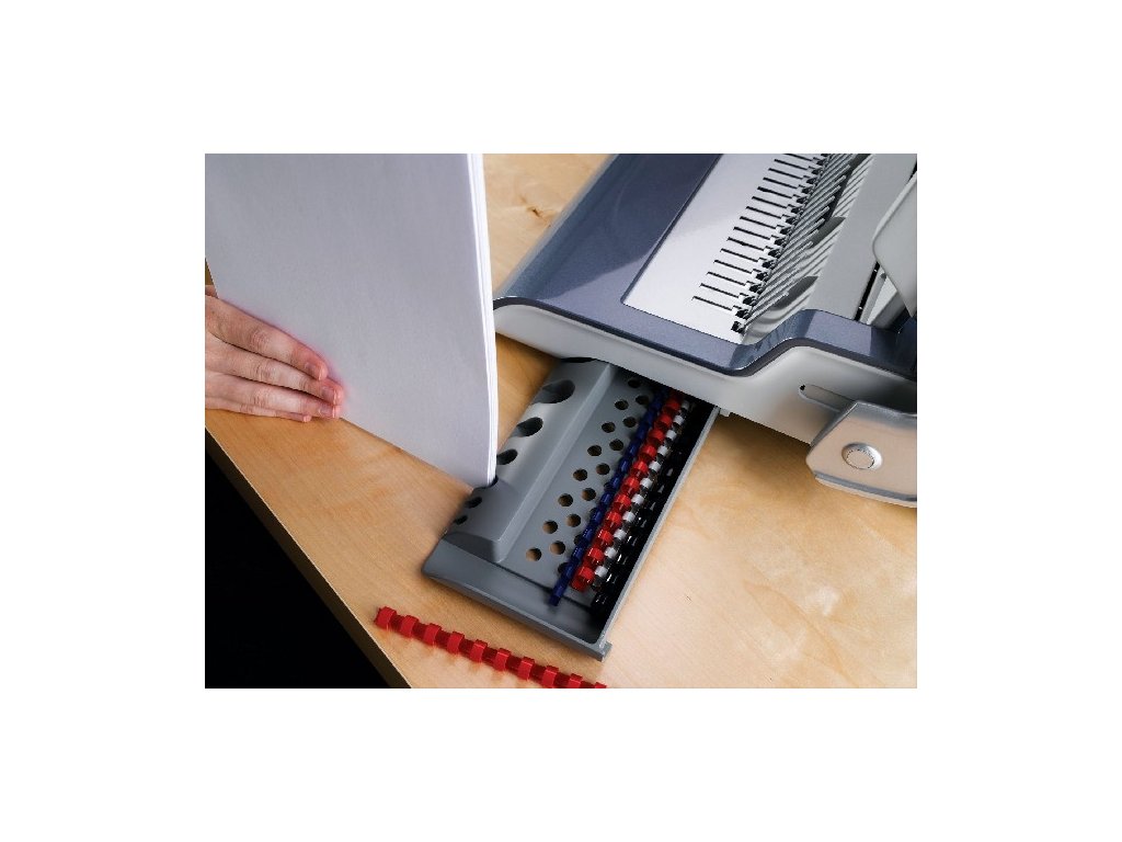 Silné zariadenie s manuálnym dierovaním a jednoduchou obsluhou vhodné pre stredne veľké kancelárie v atraktívnom dizajne. Súčasne predieruje do 20 listov papiera A4 80 g. Zviaže až do 500 listov 80 g papiera (priemer hrebeňa 6 až 51 mm). Súčasťou balenia sú hrebene a obálky na zviazanie 10 dokumentov.
