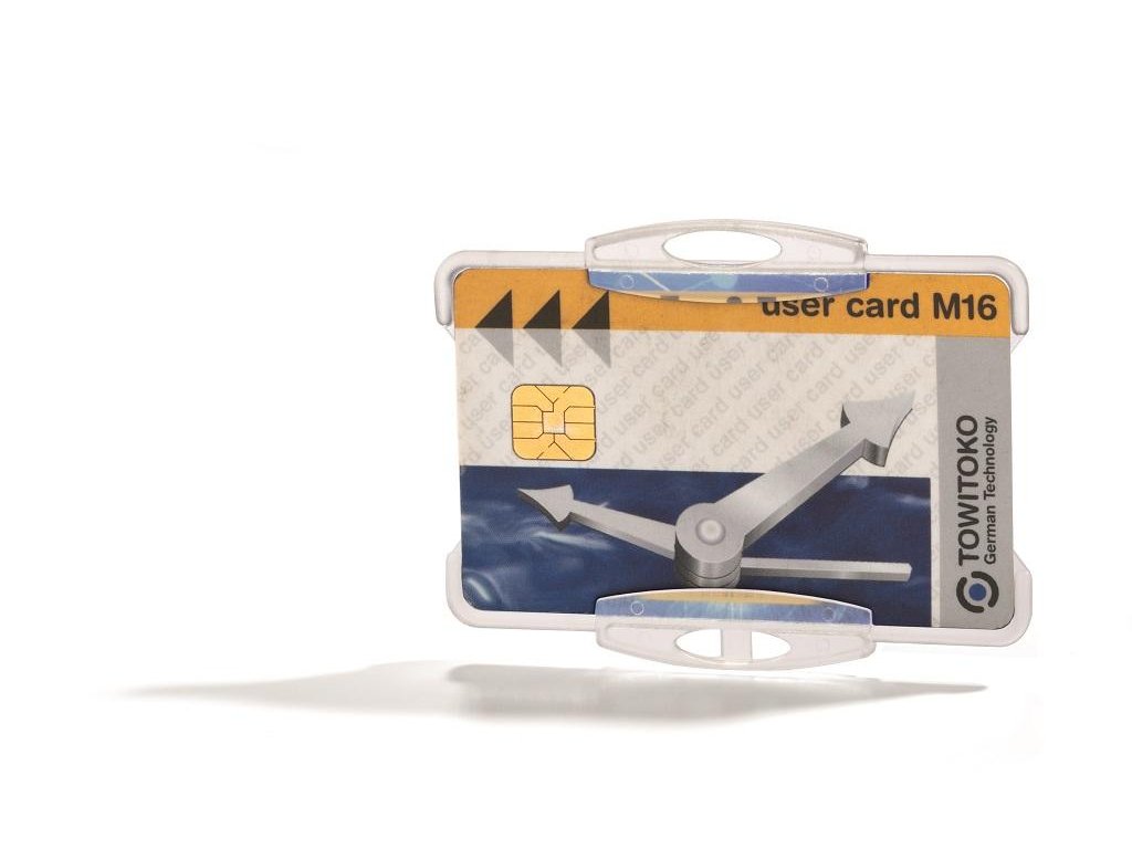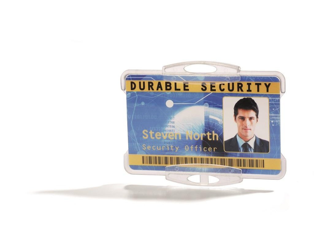 Visačky na jednu plastovú identifikačnú kartu z priehľadného pružného plastu vysokej kvality, z prednej strany otvorené. Vhodné na ochranu magnetických a bezpečnostných kariet pred poškodením. Uchytenie klipu na kratšej alebo dlhšej strane. Visačka vhodná v kombinácii s remienkom, vysúvacím kotúčom alebo štipcom. Balenie 10 ks.