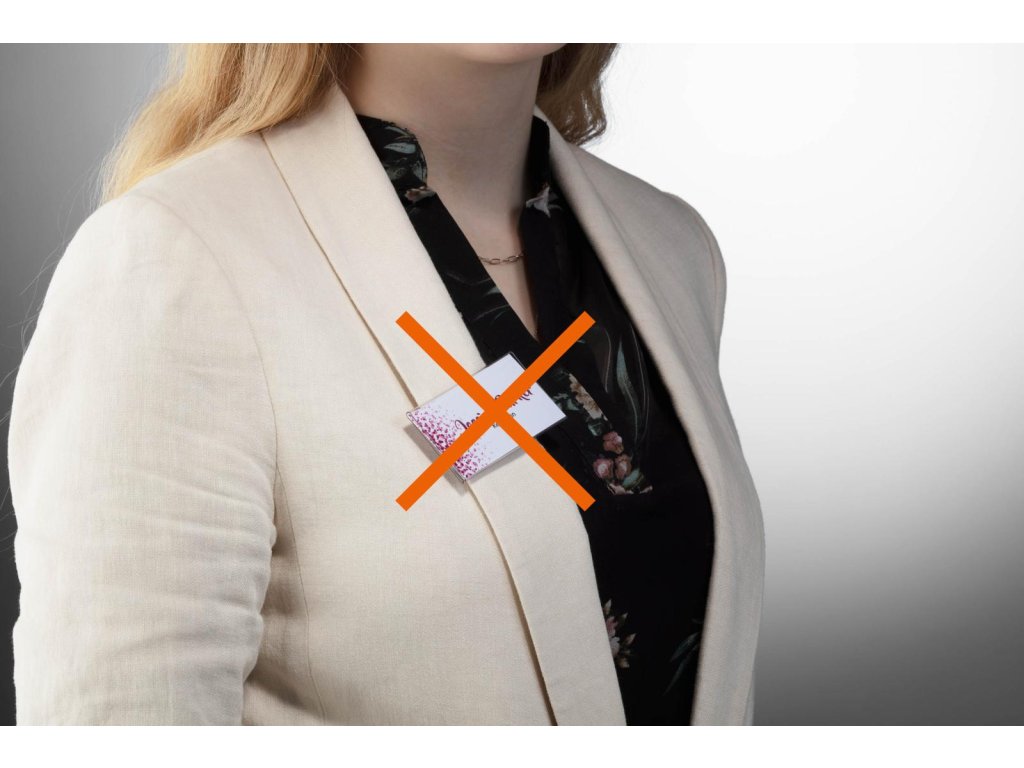 • Menovka so špeciálnym magnetickým zapínaním, ktoré zabraňuje skrúteniu, skĺznutiu alebo uvoľneniu menovky pri nosení