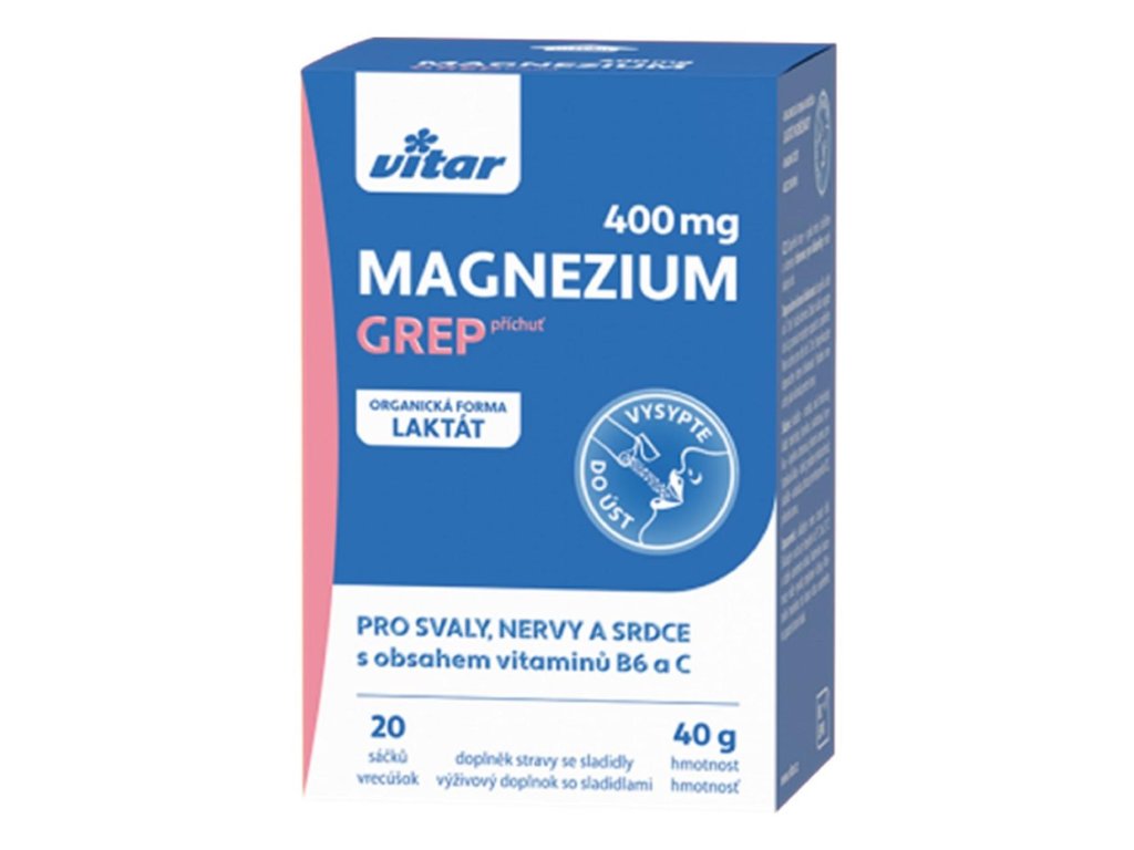 Vitar MAGNÉZIUM 400 mg+ vitamíny B6 a C s príchuťou grepu, (20sáčkov)