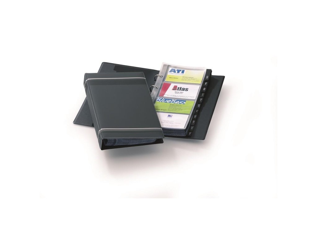 Vizitkár prenosný 4-krúžkový na 200 vizitiek VISIFIX čierny