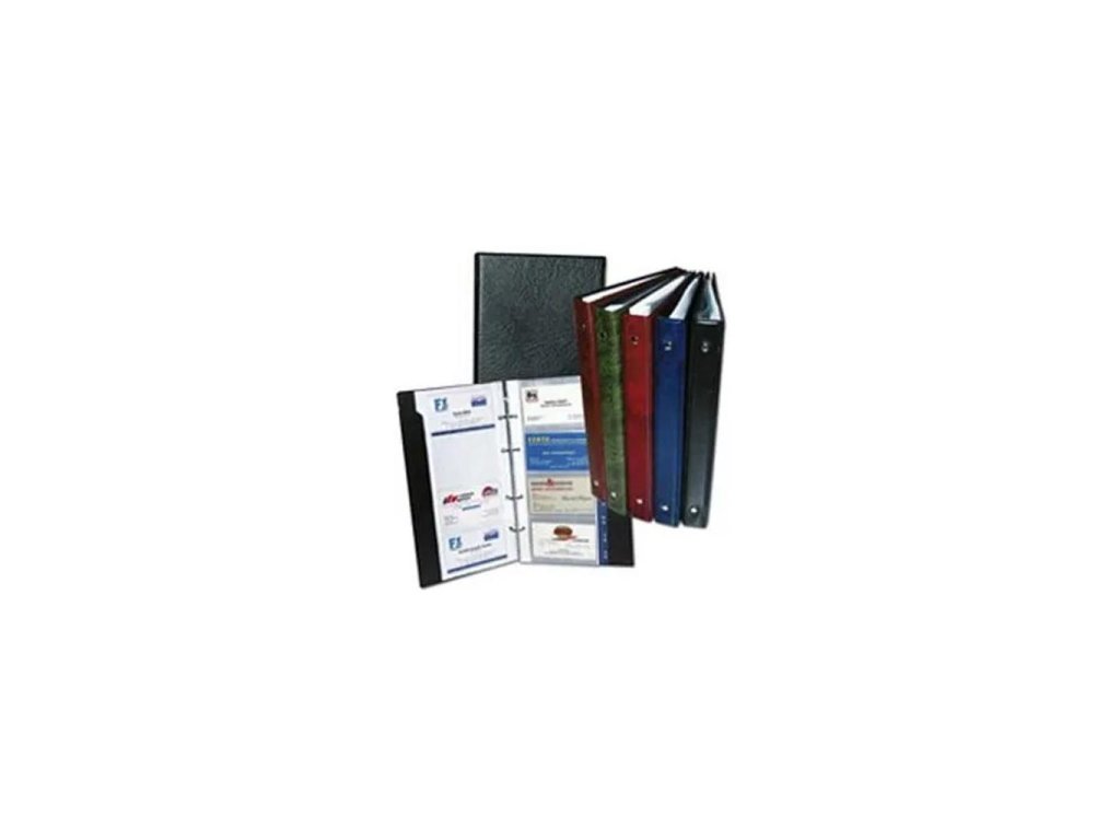 Vizikár v lesklom prevedení v imitácii kože so 4-krúžkovou mechanikou. Register A-Z pre ľahšiu orientáciu v listoch, formát A5. Kapacita 80 vizitiek.